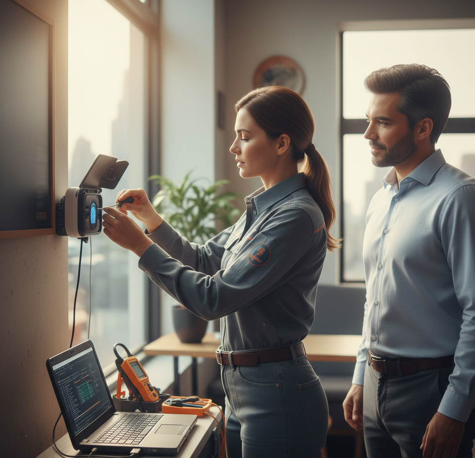 Atendimento técnico on-site com SLA, estruturado para atender grandes empresas e integradoras de tecnologias